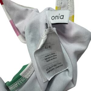 ONIA Kelly Rainbow Stripe One Piece Bathing Swim Suit. Size Small Womens. Scoop back. Simple and fun design. Excellent condition with only minor signs of normal wash/wear (minor piling at gusset, pull on lining; see photos)— no rips, stains, or holes. Retail: $175