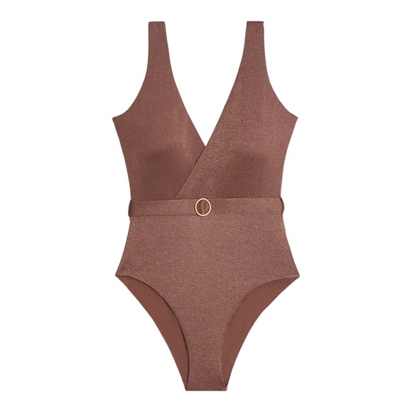 ONIA Michelle One Piece Chocolate Shimmer Brown Swimsuit Designer Medium NWT