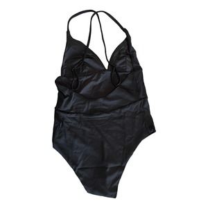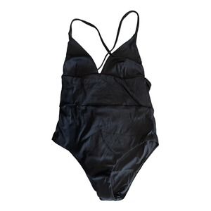 ONIA VALENTINA Black Solid Rib Swimsuit One Piece V-Neck Strappy Small