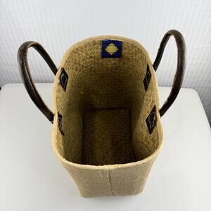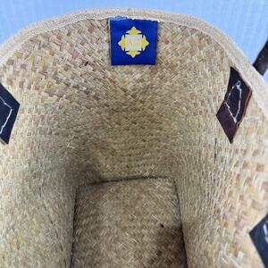 ONIGO Elegant Natural Woven Handmade French Basket Tan Tote Bag Leather Handles