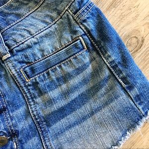 American Eagle rare 5 button up denim cut off shorts. This fit is perfect for warm weather and never goes out of style. All the way up with a high waist and legs for days. Frayed hem. Four pocket style. Button fly closure. Size 6. Measurements approx lying flat: waist 15”, inseam 2”, front rise 10.5”, back 12”. Pre-owned in excellent condition. Wear with white tee and your favorite sneakers or booties. 100% cotton.