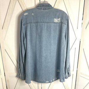 ONLY Blue Denim Milton Destroyed Button Down Shirt