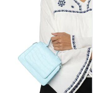 ONLY Croc-Embossed Women's Light Blue Mini Crossbody Shoulder Bag