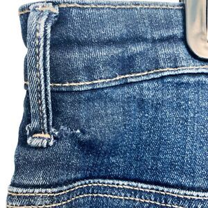 The jeans are in good pre-owned condition with no major visible defects. One belt loop (the one near the left hip) has previously torn away from the jeans at the bottom attachment point, which left a small hole in the jeans. The hole has been mended and the belt loop has been reattached. (See last photo of jeans.) There is some light wear (although it may be intentional distressing) along the edges of the pockets. There is very light puckering at the knees (likely not noticeable when worn).