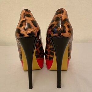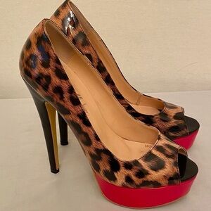 ONLY MAKER Platform Leopard Cheetah Animal Patent Heels Preowned Shoes Peep Toe Open Toe Size Euro 36 (US 6) Very sexy “stripper” and in nice preowned condition! Perfect for special occasions. Approx 6” heel. SO 44