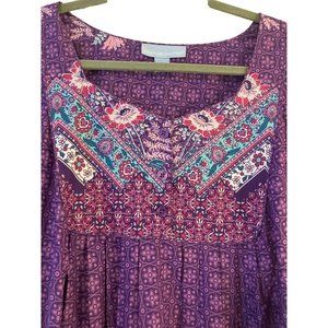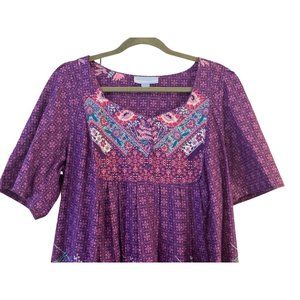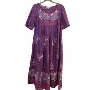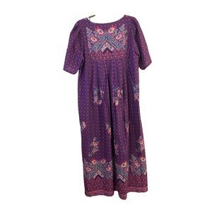 ONLY NECESSITIES Womens Purple Floral Dress 100% Cotton Pockets Modest New 14/16