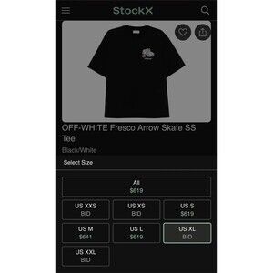 Its same model listed on StockX for a ($619 bid) and sold out at Off-White ($385 retail).