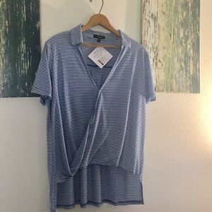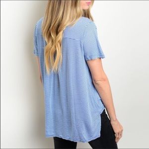 LAST CHANCE🔴High-low blue&white striped top-criss cross detail front-so stunning on! Light weight material is perfect to pair with shorts and sandals or heels! I kept one for myself and it looks amazing under a blazer with a pencil skirt for the office; it's actually a piece to my favorite office outfit!🔹please note different lighting may cause color variations🔹feel free to ask questions!🔹