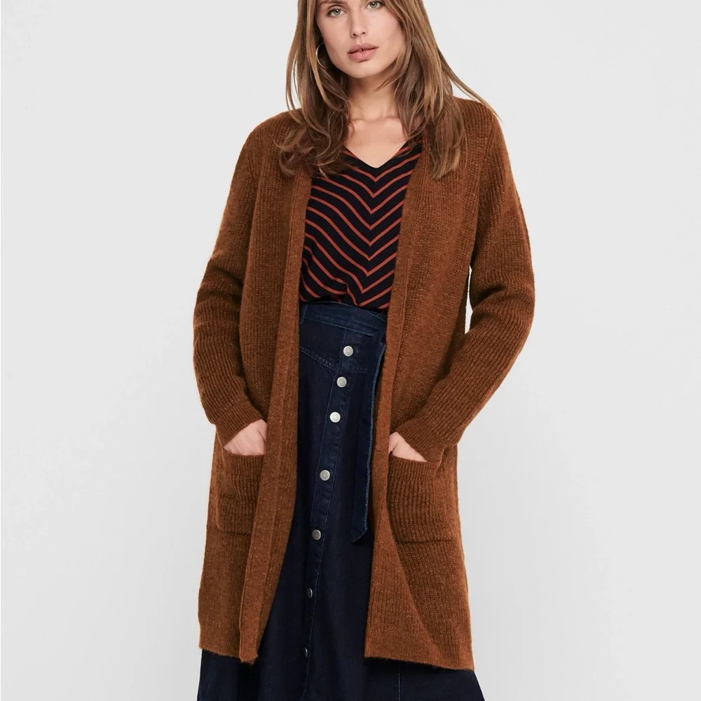 Super cozy, only worn a couple of times, good condition. Synthetic. Pockets. Oversized fit; would fit a Medium as well. Color is a rust/brownish hue. Originally purchased from ASOS.
