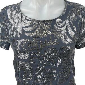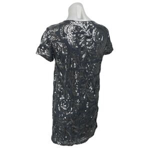 ONLY Women's Gray Blue Sequin Embellished Short Sleeve Mini Shift Dress Size S