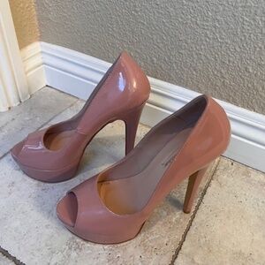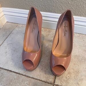 ONLYMAKER Nude Patent Leather Platform Open Toe Heel, Brand New, size 8