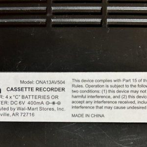 *purchased in eBay* This ONN Cassette Recorder is perfect for those who want to relive the days of listening to music on cassette tapes. The recorder comes in black and has a built-in microphone which makes recording easy and efficient. You can also connect an external microphone to the recorder as it has an external microphone output. With one touch recording, you can easily record your favorite music or audio books on cassette tapes. The recorder also has an aux port and a headphone jack which allows you to listen to your recordings or cassette tapes wherever you go. This unit is portable. Batteries included.