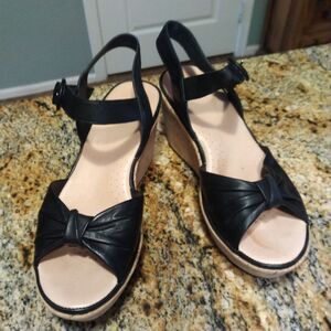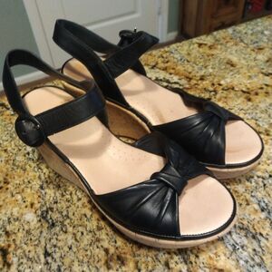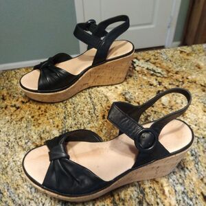 ONO Caul17 Black Leather Ankle Strap Heel Cork Wedge Platform N30303 Size 6M