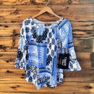ONQUE CASUAL | NWT Blue Paisley Bandana Patchwork Blouse L