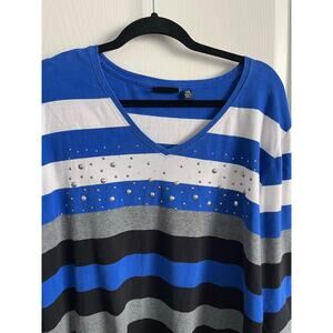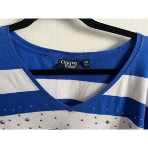 ONQUE Casuals 2X Navy Turquoise Gray Top 3/4 Sleeve Stretch Cotton Spandex Woman