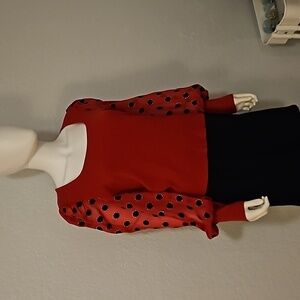 ONTWELFTH Red Velvet Polka Dot Balloon Sleeve Holiday Blouse 1X