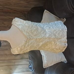 ONYX NITE Ivory Sequin Sheer Lined Crew Neck Top Size M