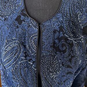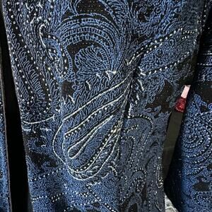 ONYX NITE Jacket Cardigan Black Blue Paisley Glitter Long Sleeve