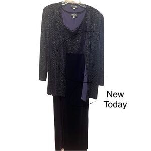 ONYX Nite 2 Piece Dress& jacket set plum colored Sparkle Slinky Black Large Holiday Pant Suit
