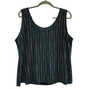 ONYX Nite Blue & Silver Glitter Black Tank Top Stretchy Boxy Sz 2X Y2K Clubwear