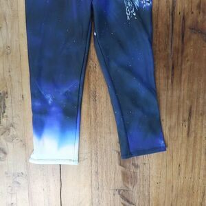AZTEC INDIAN HEADDRESS PRINT BLUE MIDNIGHT SKY CAPRI LEGGING SIZE S/M BY ONZIE PRE OWNED LIKE NEW CONDITION