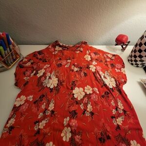 Vibrant floral shirt with button-up design. Features white and pink flowers. Perfect for casual outings.