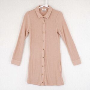 O'Neil Long Sleeve Ribbed Peach Sweater Dress Medium Button Front Collared
