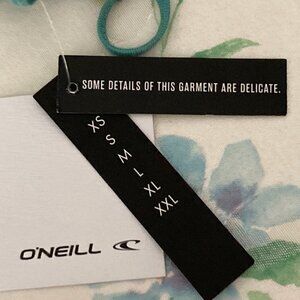 Features: adjustable spaghetti straps, button-front placket, crochet-lace trim, lace inset panels, side tie details, peplum/ruffle hem, metal O’Neill logo tab