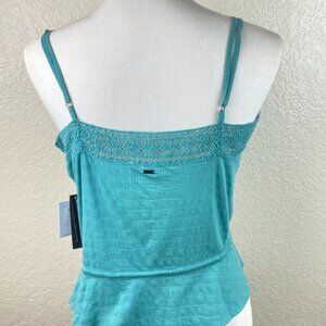 O’Neill Women’s Lace Trim Peplum Cami Tank Top Adjustable Straps Teal Small NWT