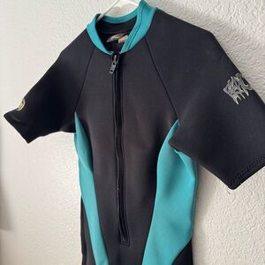O’Neil Women Front Zip Short Sleeve Reactor Wetsuit Black Teal Size 16 Beach