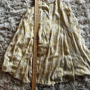 O’Neil mini sun dress, size small. Earth tone colors, creamy, yellow and brown. Shell is 100% viscose and lining is 100% cotton. In good used condition, one small hole on the back near the O’Neil tag. Please see pictures.