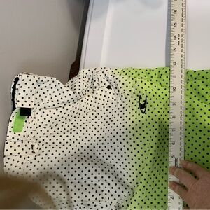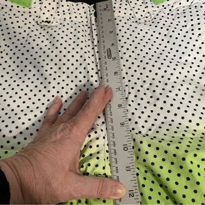 O’Neill cute lime green and white ski pant with black polka dots. Side and back pockets. Two layer fabric coating for extra water protection and breathability. Hooks at end of pant leg. Size M