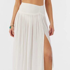 Make some plans in this flowy woven midi skirt. It has a lightweight feel, side slit detail and solid color wash.
