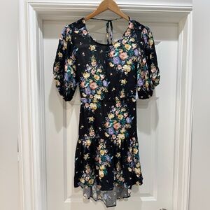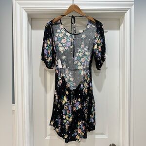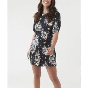 O'Neill Black Floral Alta Ruffle-Hem Mini Dress Sz Small Open Back NWT