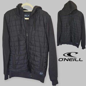 O'Neill Black Puffer Winter Fall Coat Hooded Jacket Mens Large Full Zip