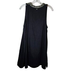 O'Neill Black Sleeveless Dress L Boho Embroidered Beaded Trim 33" Long Cotton Li