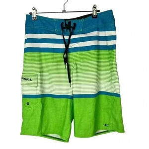 O'Neill Blue & Green Stripe Swim Board Shorts 29