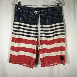 O'Neill Board Shorts Men's 30 Red White Blue American Flag Hook & Loop