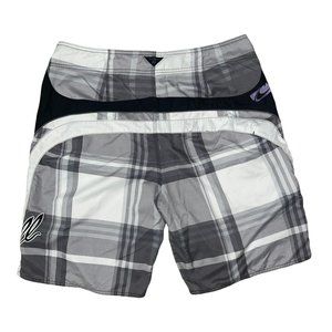 ONeill Board Shorts Mens 38 Checkered Check Pocket Embroidered Logo Swimwear