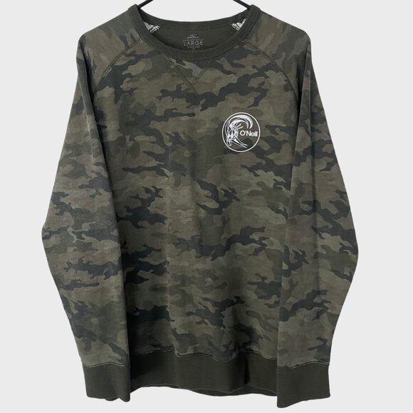 O'Neill Camo Crewneck Sweatshirt Green Men's Large Long-Sleeve Pullover Surfer