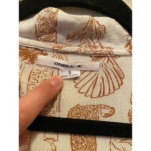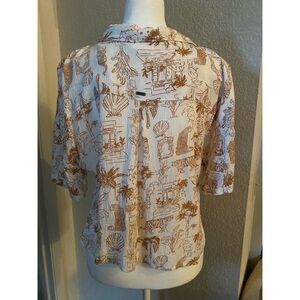 O'Neill Cream and Rust Beach & Animal Print Cropped Button Down Shirt