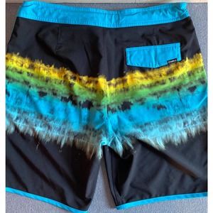 O'Neill Cruzers Mens swim short size 34 black turquoise yellow pockets swimtrunk