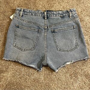 Stylish and comfortable high-waisted denim shorts. Perfect for casual outings. Features a classic blue color with a trendy distressed look.