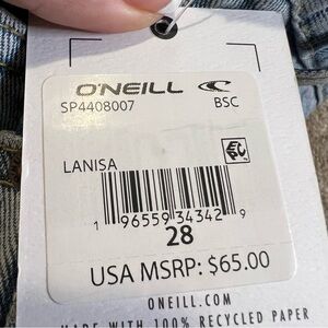 O’Neill Denim Shorts Lanisa Women’s Size 28 NTW 100% Cotton