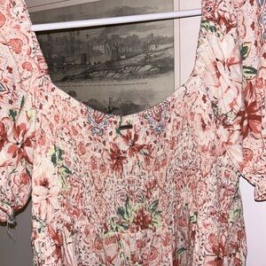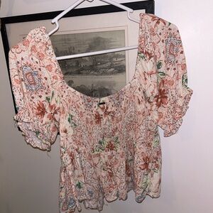 Chic floral blouse with puff sleeves. Soft fabric. Perfect for casual outings.