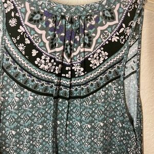 SIZE L. EUC. Green/cream pattern. Sleeveless. 100% viscose.