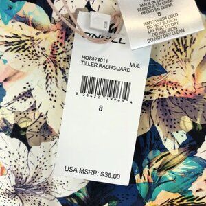 O’Neill Girl’s Tiller Short Sleeve Floral Rashguard Size 8 New with tags DF-1-T-58