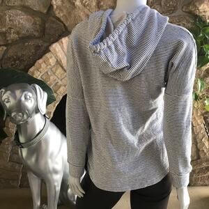 O’Neill Gray White Striped Hooded Top Women's Size Small. Measurements: bust: 19, length: 22