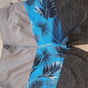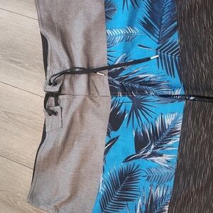 O'Neill Gray and Blue Board Shorts with Tropical Print