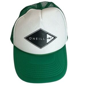 Stay stylish with the O'Neill trucker hat, featuring a bold green and white design. Perfect for any casual outing.